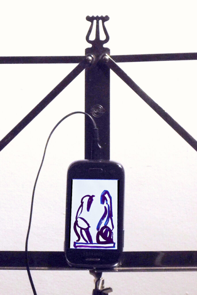 In my childhood, Constantin Brancusi and Henry Moore shaped my image of the artist. I took three of their sculptures as a starting point for my work and developed the installation with a smartphone, music stand, pedestal, and photographs. In 5-second animated films, I transformed them into energetic, active, upright women.