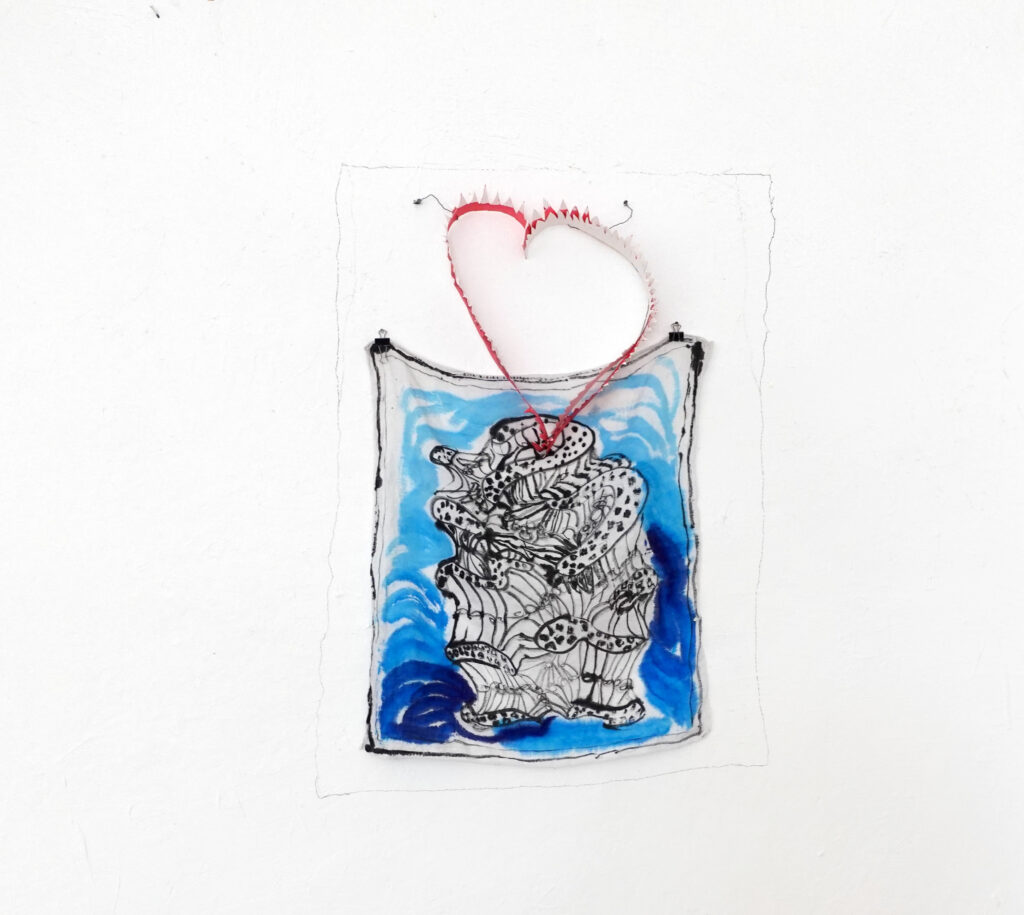 The structures of the coral speak of growth, impermanence, and the power of collective life. The heart, a universal symbol of love and emotion, is connected to it.