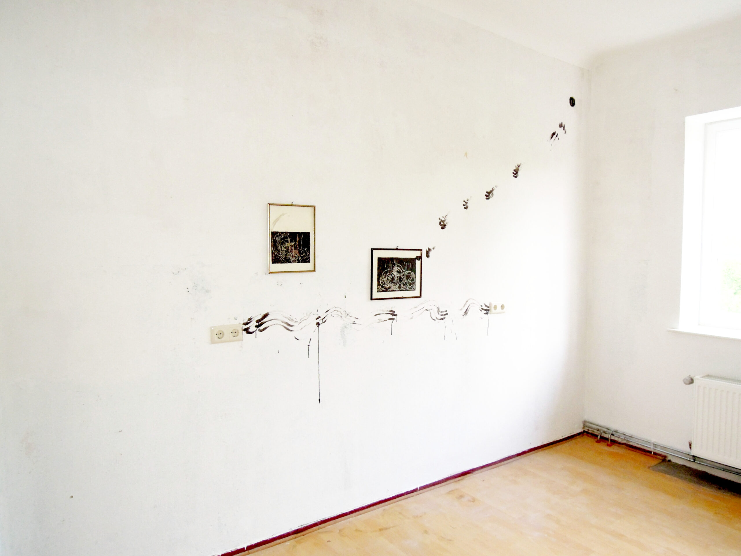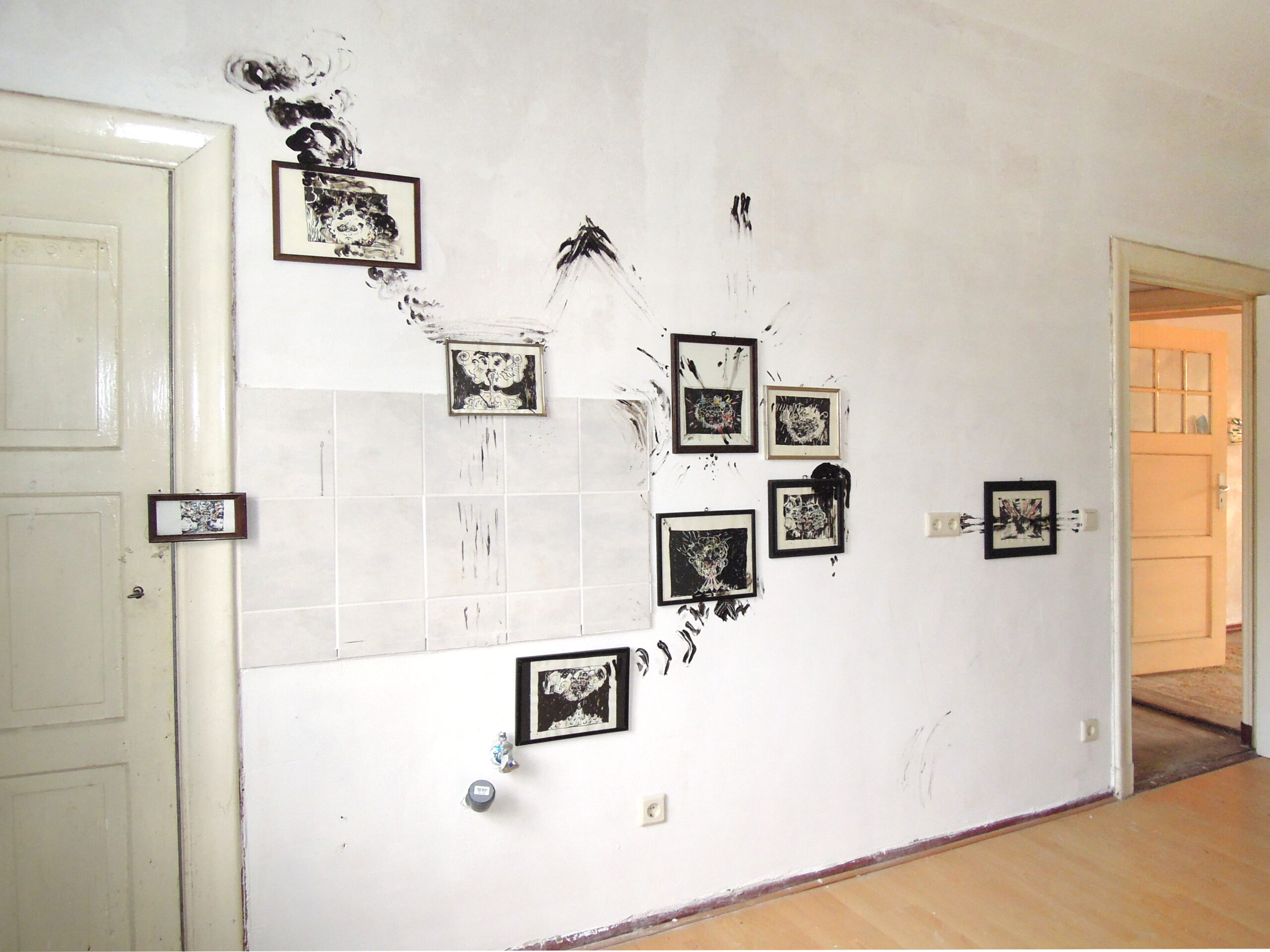 Installation with ink on paper, framed. and acryl on walls