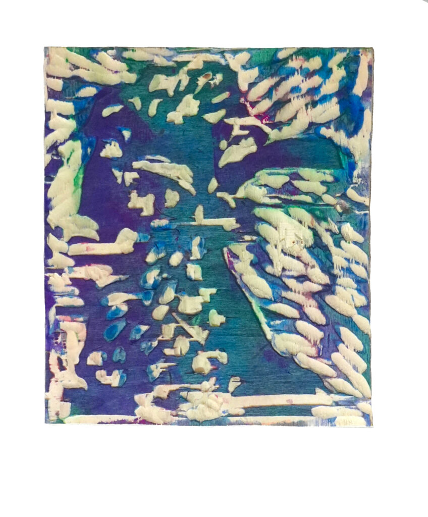 Collages with ink and woodblock prints on paper, copper plate