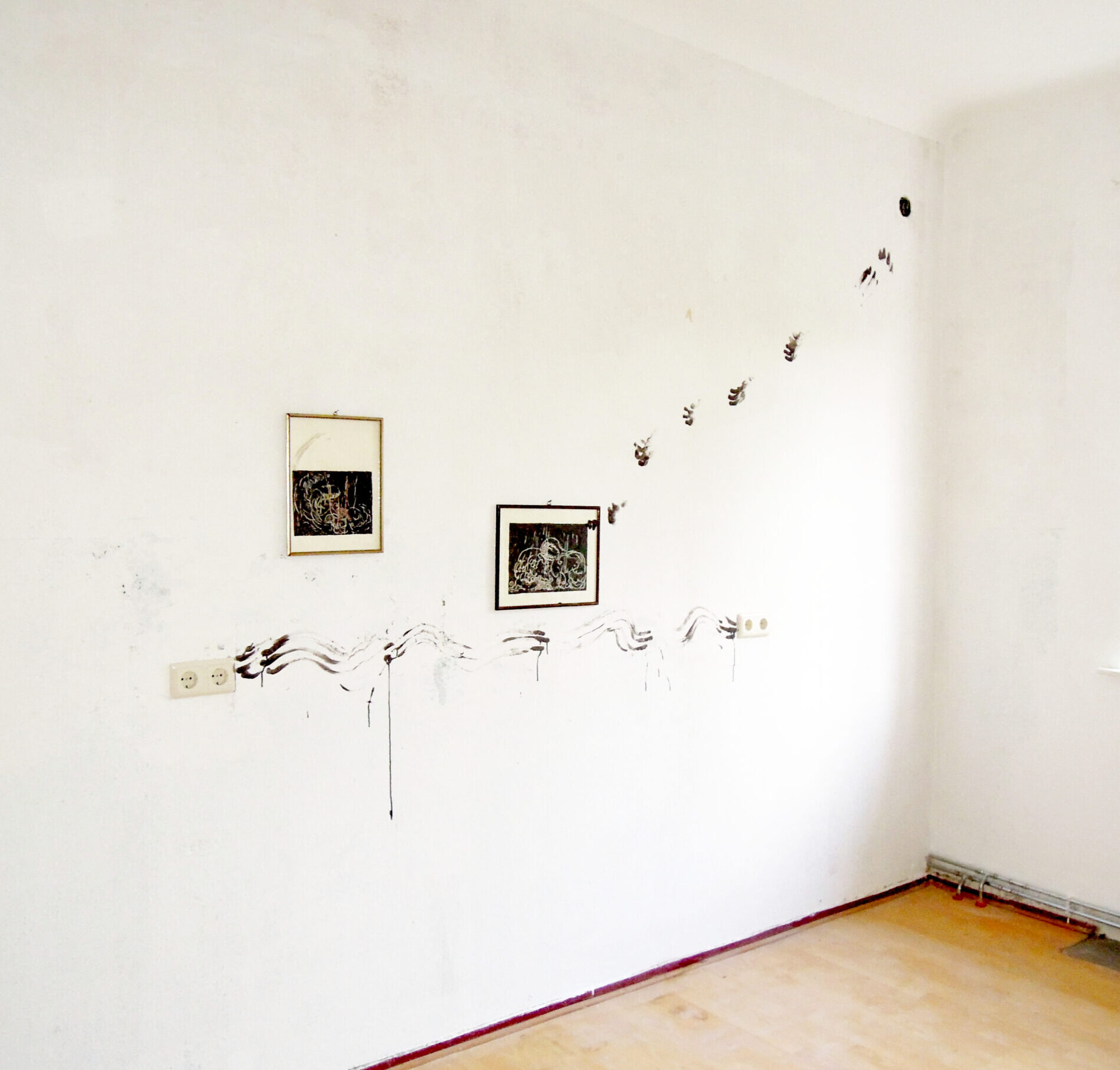 Installation with ink on paper, framed. and acryl on walls