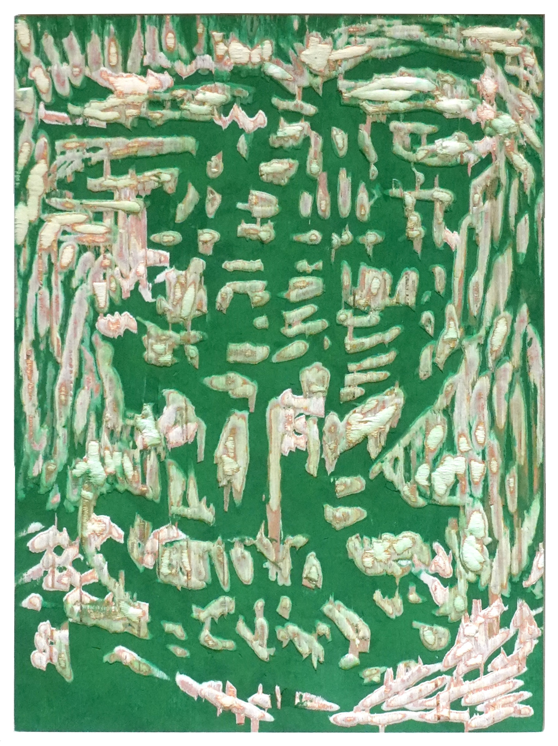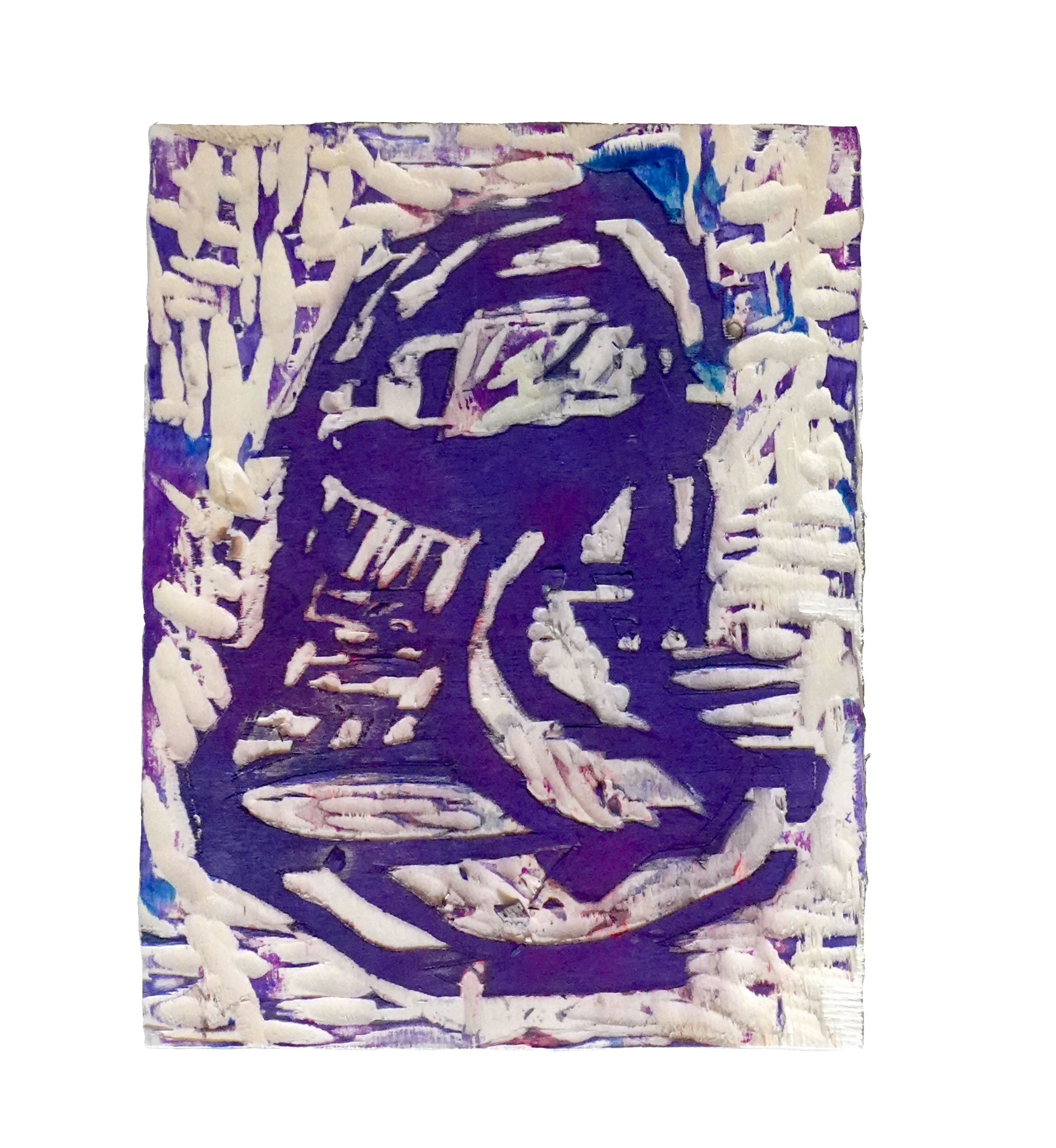 Colored wooden printing blocks, ink and gouache on canvas, copper plates, cord